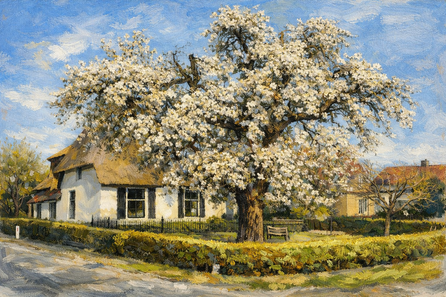 De eerste zonnestralen van maart vielen zacht over de dijken rond Hulhuizen. Het buurtschap was al in afwachting ervan. Toen klonk er plotseling een bekend geklepper boven de weilanden.