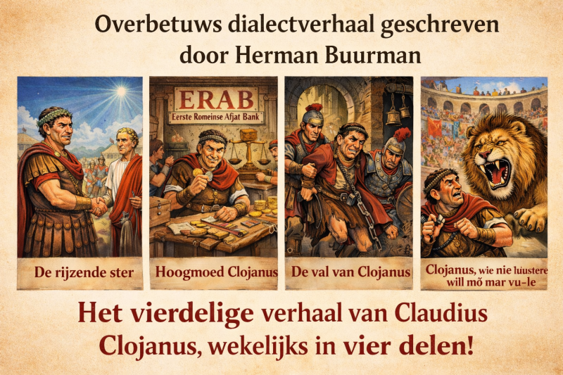 Met veel plezier kondigen we een bijzonder project aan van onze huisschrijver Herman Buurman. Het is zijn meest uitgebreide dialectverhaal (de oostelijke variant van het Betuws, gesproken in de Over-Betuwe rond plaatsen als Gendt, Hulhuizen, Doornenburg en omgeving) die publiceert gaat worden op ons Facebook kanaal Hulhuizen aan de Waal.